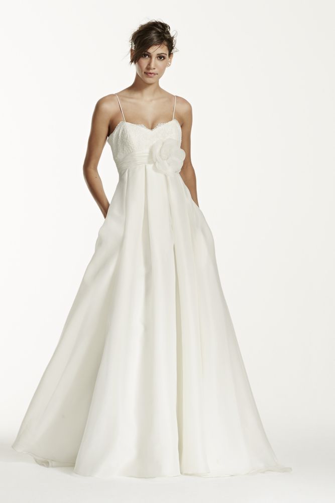 Spaghetti straps add some chic and elegance to your wedding gown and emphasize your beautiful back.